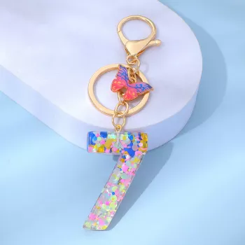 Colorful Butterfly Number Keychain with Resin Sequins